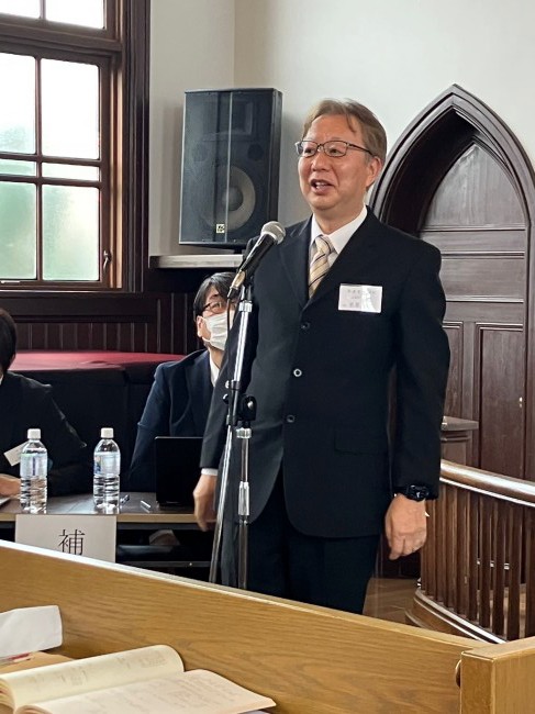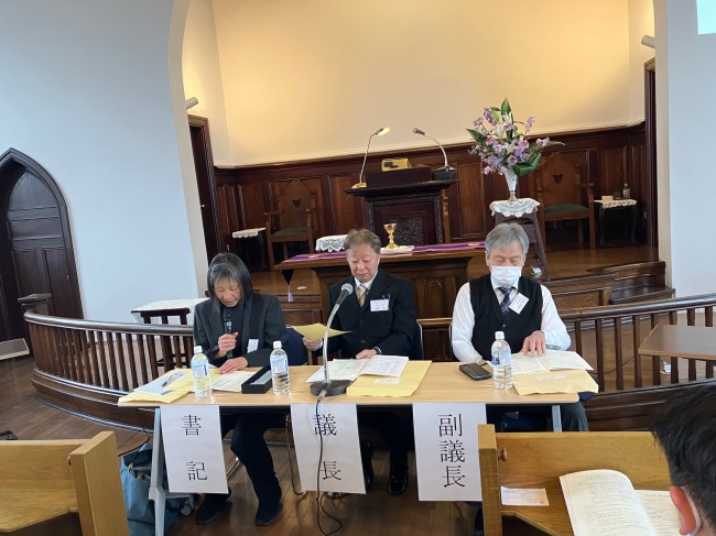 2026年3月20日(金)、武蔵豊岡教会を会場として、2026年度埼玉地区総会が開催されました。 開会礼拝の説教者は、所沢みくに教会の加藤久幸牧師、説教題は「教会へのメッセージ」(テサロニケ一1・1〜10)でした。 開会礼拝後、組織会を経て、議事に入りました。 2025年度の地区委員長報告を承認後、地区委員長の予備選挙を行いました。その後、諸報告を引き続き行い、選挙結果がでたところで、報告を中断し、本選挙を行いました。同様に、地区委員(教師・信徒)の半数改選の選挙の投票をしては議事進行、という議事運営となりました。 2025年度は、2024年度から引き続き、常設委員会の一つである社会委員会が活動を休止しており、地区委員会が「8・15集会」「2・11集会」を開催したことが報告されました。 日野原記念上尾栄光教会が、2025年12月に教団を離脱したことが報告されました。埼玉地区は、57教会・伝道所となりました。 2025年度は、地区教会全体修養会が軽井沢南が丘倶楽部で開催され、宿泊を伴う修養会は久しぶりでしたが、多数の参加者があり感謝でした。 2025年度の地区活動の諸報告、決算報告が質疑応答を経て承認されました。2026年度地区宣教活動計画、会計予算も可決されました。 議事の前には関東教区問安使の挨拶をいただき、議事の後には、2025年度に地区内教会に就任された教師、2025年度末をもって地区内教会を辞任される教師の挨拶をいただきました。 地区総会議員とは別に、投票・集票の奉仕者を武蔵豊岡教会と初雁教会より送り出していただき、スムーズに選挙が進められました。会場の武蔵豊岡教会のご奉仕により、駐車場や昼食等のご配慮をいただきました。感謝です。 埼玉地区総会で決議された2026年度の活動を、地区内教会・伝道所が責任をもって共に担っていけますよう、主のお助けを祈ります。 主な議案について報告 (1)地区委員長選挙結果 栗原 清(武蔵豊岡・再) (2)地区委員選挙結果 @教師委員 指方周平(東所沢・再)、平澤 昇(埼玉新生・新)、渡邊典子(三芳・新) A信徒委員 五十嵐征利(草加・新)、古澤ひかる(越谷・再) なお地区委員の留任は、教師は、武田真治(上尾合同)、疋田義也(本庄)、横山基生(志木)、信徒は、金刺泰雄(上尾合同)、前田信一(大宮)です。 (3)2026年度地区宣教活動計画 主題 「一致と連帯、福音の前進に仕える」 聖句 「兄弟たち、わたしの身に起こったことが、かえって福音の前進に役立ったと知ってほしい。つまり、わたしが監禁されているのはキリストのためであると、兵営全体、その他のすべての人々に知れ渡り、主に結ばれた兄弟たちの中で多くの者が、わたしの捕らわれているのを見て確信を得、恐れることなくますます勇敢に、御言葉を語るようになったのです。」(フィリピの信徒への手紙1章12〜14節) 埼玉地区は日本基督教団・教区の中では最大の地区であり、その数は活動休止中も含めて57教会・伝道所(羽生の森教会、桶川伝道所は活動休止)、及びキリスト教主義の学校・同施設幼児施設等、そして教団の教師を養成する教団認可神学校(東京聖書学校)のある地域信仰共同体です。そして、この多様で豊かな地区の健全な成長は、各個教会・伝道所の正しい福音宣教・伝道における、福音信仰の健全さによります。 それ故、各個教会伝道所はどのような「福音」を伝えるのか、が問われます。それは、@「十字架の主イエス・キリストの死によって贖いとなること(罪の赦しと今を生かされている幸いと喜び)」。A「主イエス・キリストが三日目に復活されたこと(永遠の命に与る確かさ)」。B「再臨の主イエス・キリストが開かれる神の国の約束と実現(将来の希望と平安、慰め)」が救いとなる、主イエス・キリストの福音です。 従って、日本基督教団信仰告白では、教会の働きとして明確に「教会は公の礼拝を守り、福音を正しく宣べ伝え」と告白します。それ故、洗礼式・信仰告白式(堅信礼)で告白される信仰は、人の理想や考え、この世の価値観に基づかず、初代教会が告白して来た信仰が私たち信仰者にとって唯一の根拠として価値あるものです。日本基督教団は、神の御子救い主メシア、イエス・キリストの福音を受け入れた信仰の伝統に基づく信条、信仰告白(使徒信条を始め、ニカイア・コンスタンティノポリス信条、カルケドン信条、アタナシオス信条。プロテスタント教会では、アウグスブルグ信仰告白、ウエストミンスター信仰告白等)を継承して、日本基督教団信仰告白を制定しました。この信仰告白のもとに、各教会伝道所の教派的伝統を加味して主の御前に豊かな教会形成と宣教・伝道の御業が豊かに実現されるのです。 この「信仰の継承」の課題と共に前述の「福音の継承」は、より大きな課題です。これらは教師と信徒が正しく「日本基督教団信仰告白」を告白し、日本基督教団教憲教規に基づいた教会・伝道所の形成を祈りつつ行う事で共に協力し、埼玉地区規則第2条にも規定される「一致と連帯、福音の前進に仕える」こと